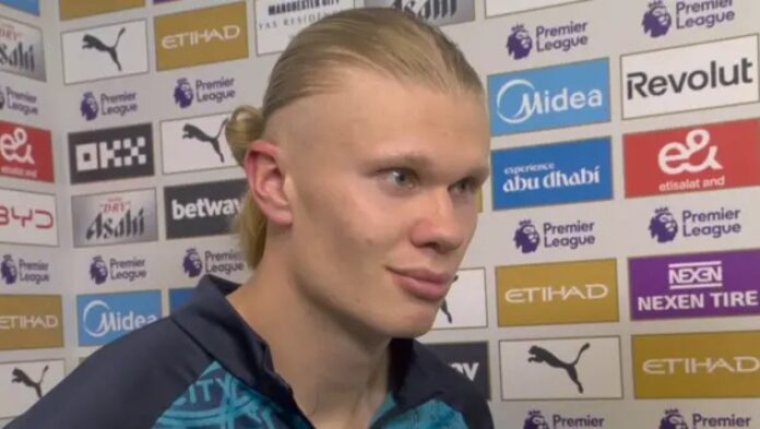 Tilbake i august 2022, etter sin Premier League-debut for Manchester City mot West Ham, scoret Haaland to mål. Da han ble spurt om han var skuffet over å ikke ha scoret hat-trick, svarte han kontant: «Det er litt dritt.» Så snudde han seg mot intervjueren og la til: «Jeg er ikke så god i språket i dette landet.» Øyeblikket ble umiddelbart legendarisk.