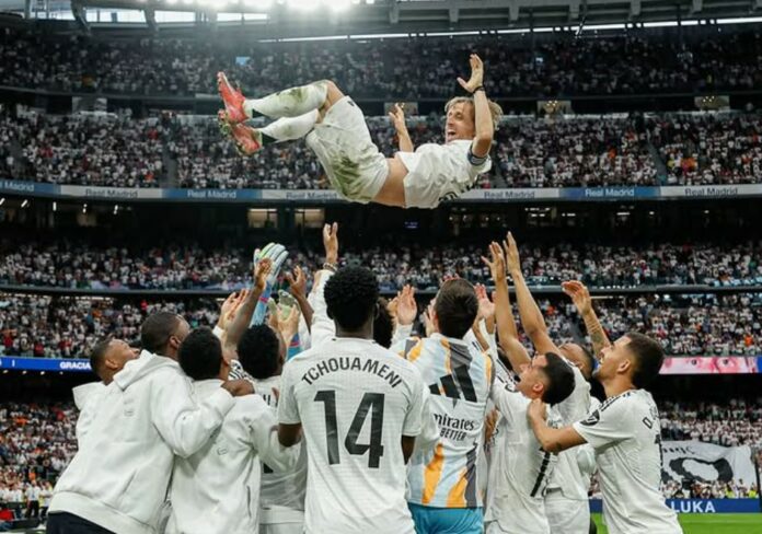 Bernabéu ga ham stående applaus, og mange fans holdt opp takkeskilt mens de ropte hans navn. Modrić omfavnet både lagkamerater og familien, inkludert Toni Kroos, som forlot klubben i fjor.